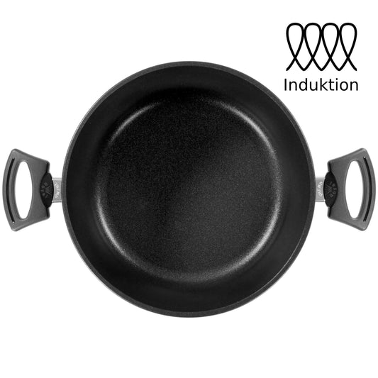 Hochwertiger Aluguss sorgt für optimale Hitzeverteilung und zuverlässige Ergebnisse bei Saucen, Gemüse oder Eintöpfen. Die Antihaftbeschichtung erleichtert das Kochen und die Reinigung – ohne Anhaften oder Einbrennen.